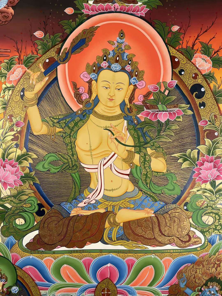 接下来请朋友们欣赏一组沃唐卡编号为162-184917的文殊菩萨唐卡: